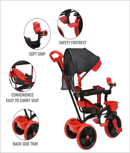 Dhanoa brings you the Junior Baby Tricycle. The brand is known for its superior build quality and dependability. The bicycle features a solid frame and high-grip tires that provide excellent traction and movement, allowing you to ride it with ease. It is an absolute must-have since it allows you to experience the excitement and thrill of riding a bicycle.