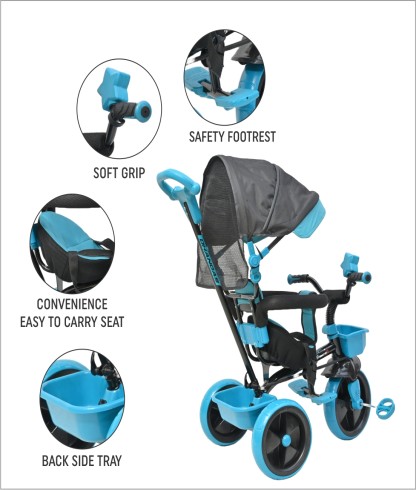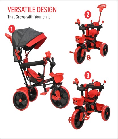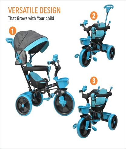 Dhanoa brings you the Junior Baby Tricycle. The brand is known for its superior build quality and dependability. The bicycle features a solid frame and high-grip tires that provide excellent traction and movement, allowing you to ride it with ease. It is an absolute must-have since it allows you to experience the excitement and thrill of riding a bicycle.