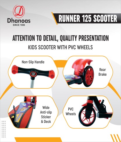 Introducing the Dhanoas Runner 125 Scooter – A Thrilling ride that blends style with durability for the ultimate adventure on wheels! Designed with young riders in mind, this scooter boasts a sturdy metal frame ensuring both safety and resilience. Its smooth kick mechanism propels kids into a world of fun, while the sleek design adds a touch of cool to every ride. Watch as your child cruises with confidence, mastering the art of balance and coordination. The Kidsmate Roadeo Kick Metal Scooter: where excitement meets reliability, creating unforgettable moments on the go!